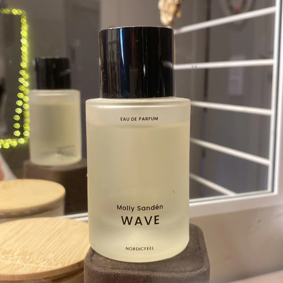 Fräsch parfym med minimalistisk design från Molly Sandén. Flaskan är frostad och vit med svart, blank kork. Märkt med NORDICFEEL.