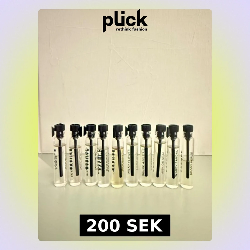 Tio parfymtesters från ESSNCE, de flesta är nästan helt fulla men alla är minst halvfulla. Majoriteten unisex-dofter. Dofterna är Toxique, skyfall mystery, signature vang, warm n spicy, vanilla baby, milky flower, drunk apple pie, high on chai, woody sandal och boosy peach. Nypris 450 kr