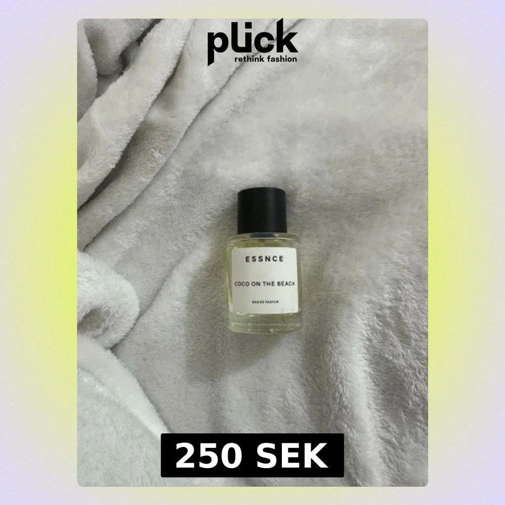 Fräsch parfym från ESSNCE med namnet Coco On The Beach. Flaskan är genomskinlig med en enkel vit etikett och svart lock. Doften är en Eau de Parfum och flaskan har en stilren, rund form i glas. Perfekt för dig som gillar minimalistisk design.