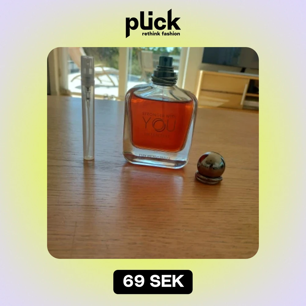 Säljer 5 ml sample av Stronger with you Intensely. Denna parfym kommer få dig många komplimanger samt folk som vill följa efter dig. Karamell med tonka och söt. Bäst nu för höst/vintern. Säljer 5 ml för 69 kr