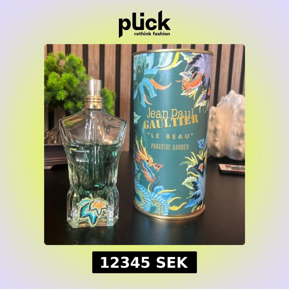 Cirka 55/75 ml kvar Söker Byte kan va vilken parfym som helst vill byta för jag inte riktigt behöver den längre om någon har en Jean Paul Gaultier Le beau edt så kontakta gärna skulle jätte gärna vilja byta Parfymflaska formad som en manlig torso i glas med grönblå nyans och tropiskt mönster vid basen. Kommer i en dekorativ tub med färgglada drakar och blad. Doften heter Le Beau Paradise Garden.