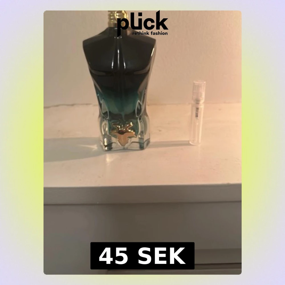 Säljer en Jean Paul Gaultier Le Male parfym i den ikoniska flaskan formad som en manlig torso. Flaskan har en snygg blågrön gradient och gulddetaljer. Parfymen har en fräsch och maskulin doft, perfekt för dig som vill sticka ut.