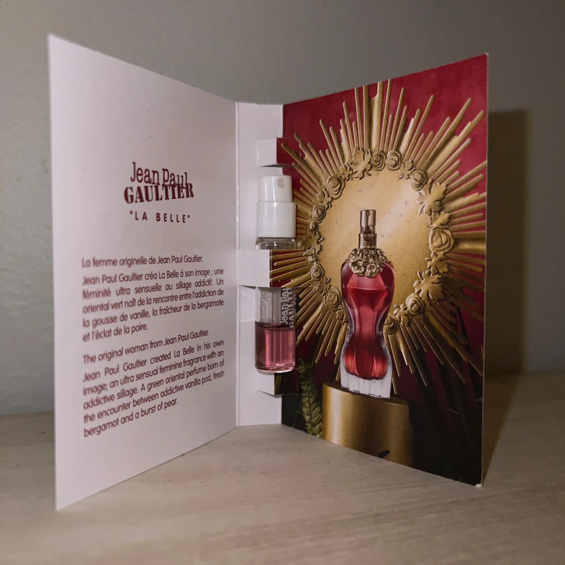 Prova La Belle från Jean Paul Gaultier – en Eau de Parfum i smidig 1,5 ml spray. En sensuell doft med inslag av vanilj, bergamott och päron. Perfekt storlek för att ta med överallt. Inte jättemycket kvar i proven, så perfekt om man bara precis vill testa doften