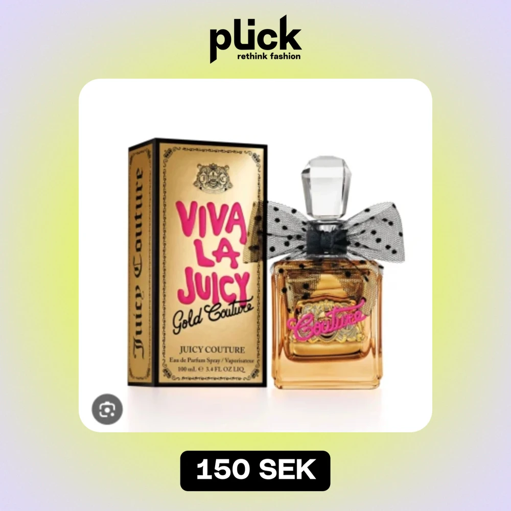 Juicy couture parfym, Viva la juicy Gold! Luktar otroligt gott😍 Kan inte se exakt hur mycket som Ă€r kvar men skulle sĂ€ga ca 60-70%, dĂ€rav det billiga priset💗