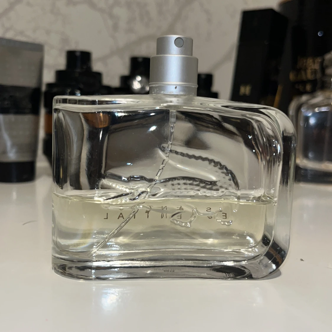 Fräsch och sportig herrparfym från Lacoste, Essential. 75ml typ 37ml kvar, Kan bytas också som allt i min profil ba skriv, Kan bytas mot en annan parfym.