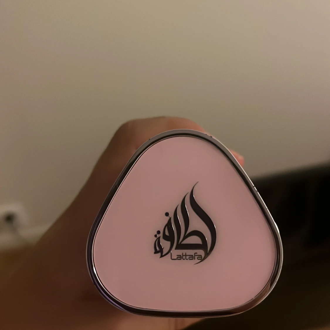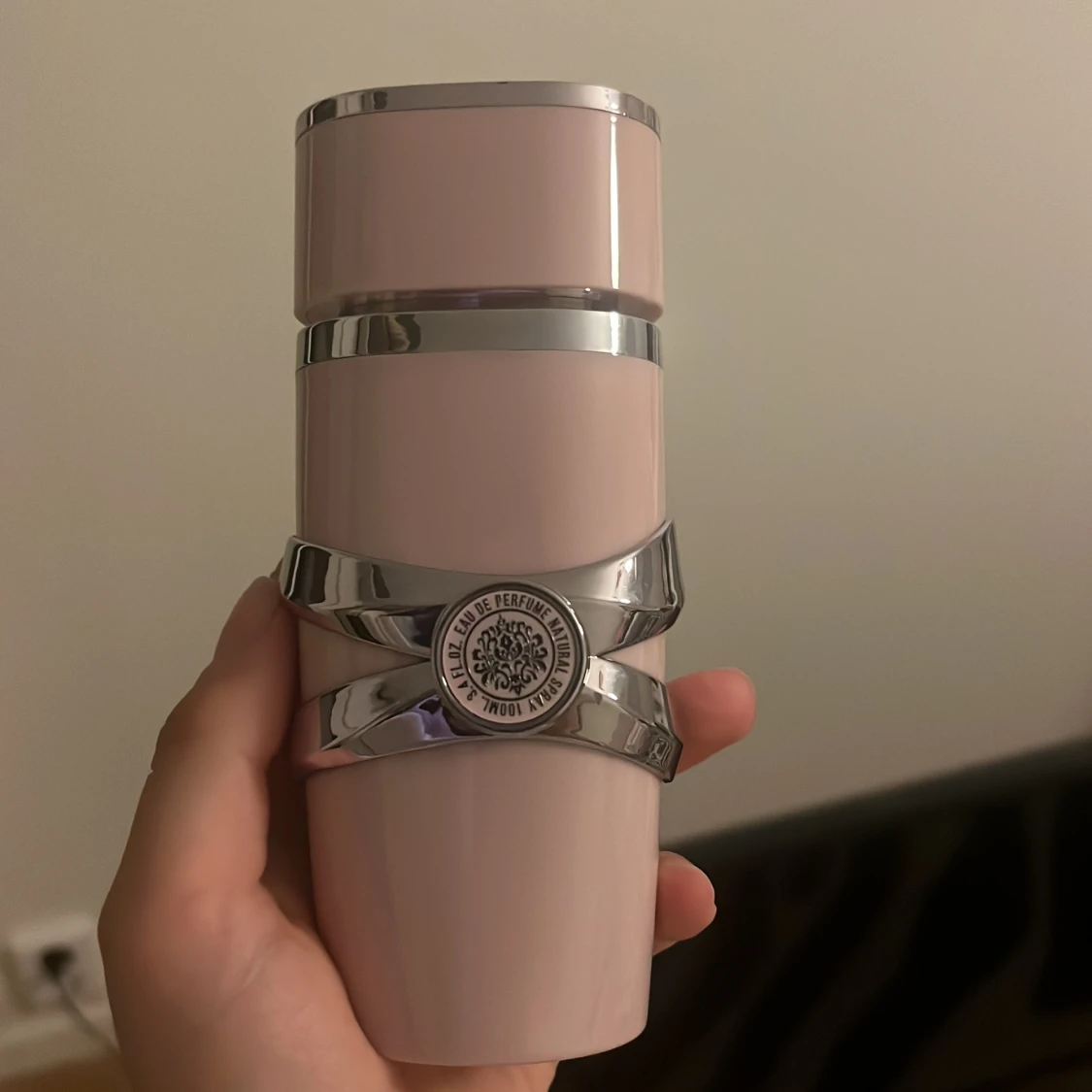 Säljer en parfym från Lattafa- Yara i en snygg rosa flaska med silverdetaljer och unikt trekantigt lock. Är nästan hel ny fick den som en gåva så allt är nästan kvar.