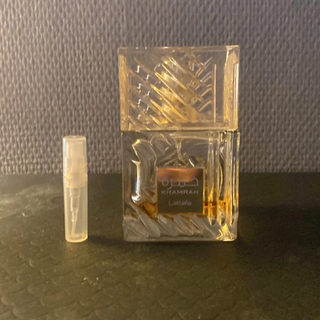 Testa Lattafa Khamrah i ett smidigt parfymprov. Perfekt för dig som vill upptäcka något nytt och trendigt. Enkelt att ta med i väskan eller fickan.