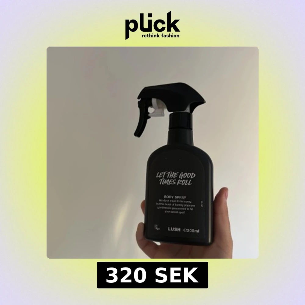 Den är anvönd endast 2-3 gånger alltså som ny och full. Den ärBody spray från LUSH med namnet Let The Good Times Roll. 200 ml flaska. Vegansk produkt. Perfekt för dig som vill ha något unikt och lekfullt i din doftsamling.