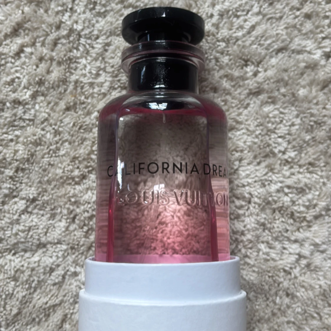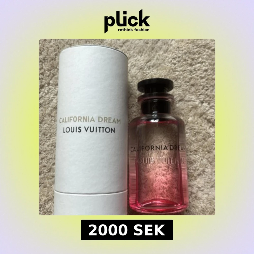 Exklusiv parfym från Louis Vuitton, California Dream. Flaskan är i glas med en snygg rosa toning och svart lock med LV-logga. Kommer i original vit rund förpackning med guld- och svart text. Lyxig och modern design.