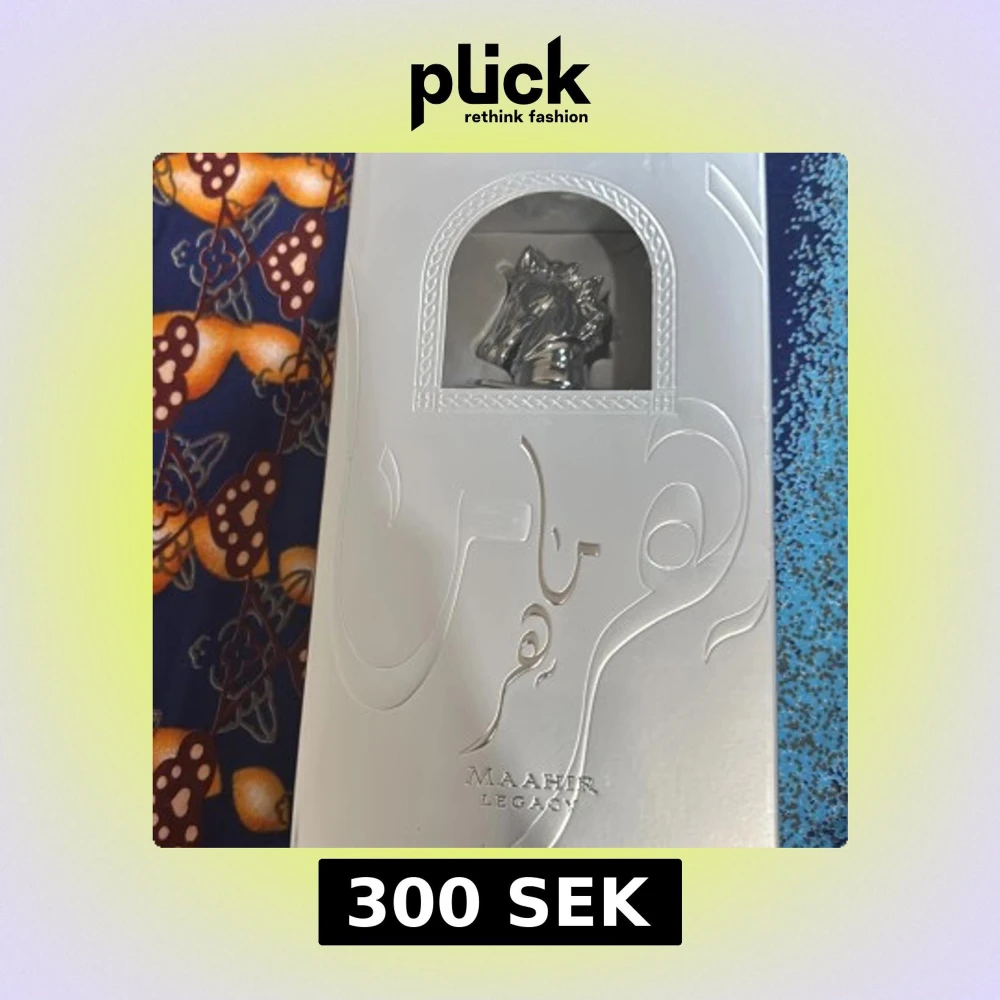 Maahir Legacy Eau de Parfum i en elegant silverfärgad förpackning med hästhuvud i metall på flaskan. Parfymen har en lyxig och modern design, perfekt för dig som gillar exklusiva dofter och snygga detaljer.