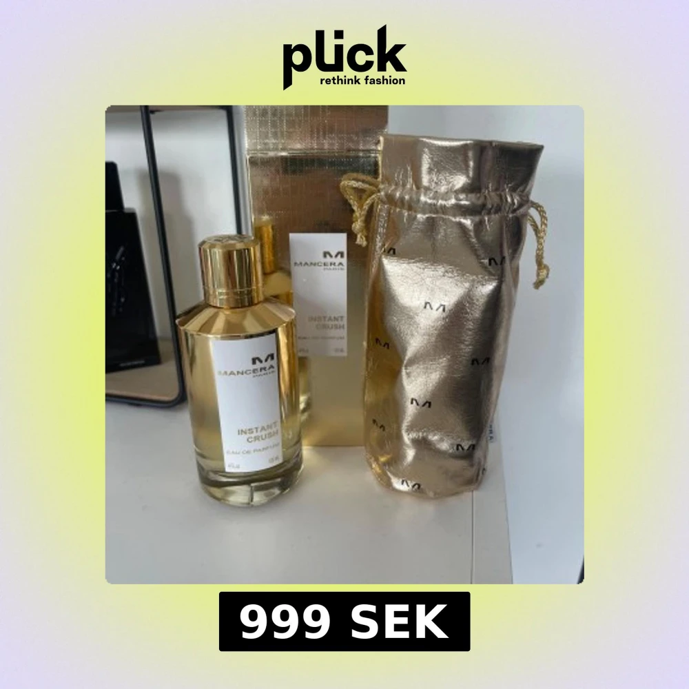 Lyxig parfym från Mancera, Instant Crush, i en snygg guldig glasflaska på 120 ml. Kommer med exklusiv guldfärgad förvaringspåse och matchande ask. Parfymen är använd några enstaka gånger och är ca 110 ml kvar.