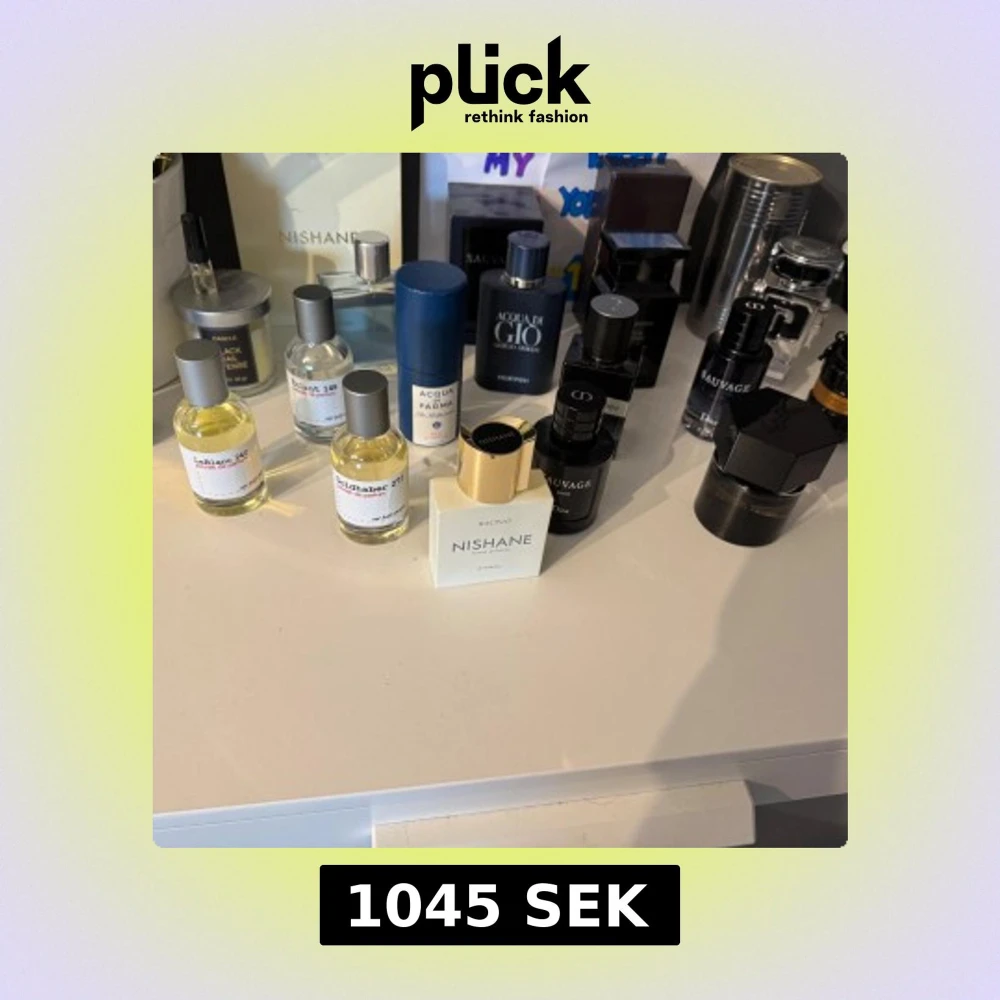 En samling av exklusiva parfymer från olika märken som Nishane, Acqua di Parma och Dior. Flaskorna varierar i form och storlek, med eleganta och moderna designinslag. Perfekt för den som vill ha en varierad doftgarderob.