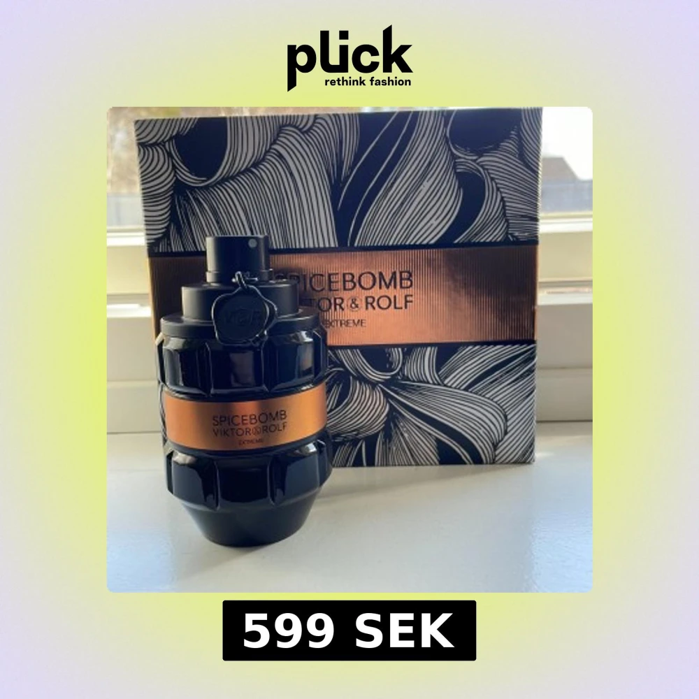 Säljer en flaska Spicebomb Extreme från Viktor & Rolf. Flaskan har en unik design som liknar en granat, med en svart och kopparfärgad etikett. Parfymen kommer i en elegant förpackning med ett svartvitt mönster och inkluderar även en liten sprayflaska för resor. Perfekt för den som vill ha en intensiv och kryddig doft. Har tagit typ två spray. Och har 90 ml