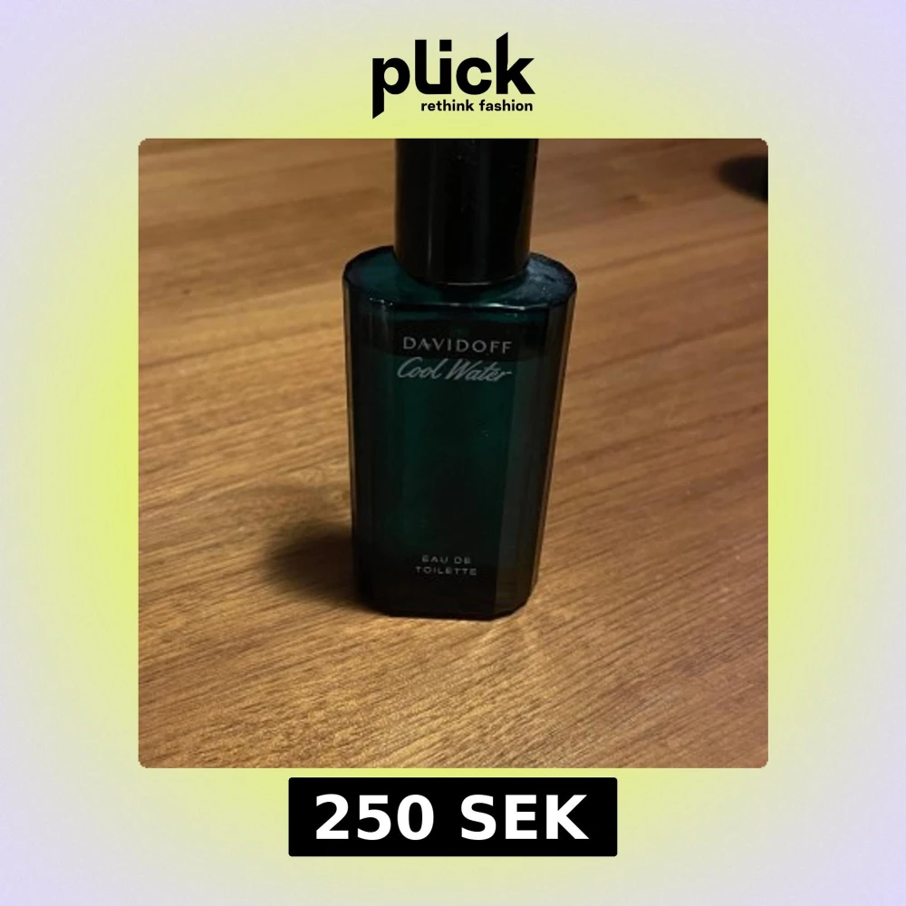 Säljer en flaska Davidoff Cool Water Eau de Toilette. Flaskan är mörkblå och elegant med en svart kork. Den rymmer 40 ml av denna fräscha och klassiska doft. Perfekt för den som gillar en uppfriskande och maskulin doft. Bara använd lite så det mesta är kvar