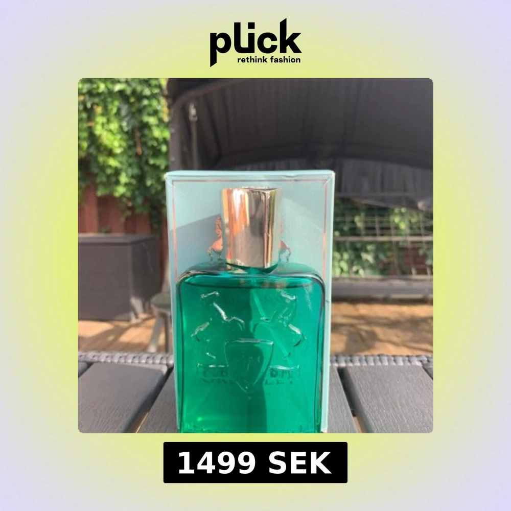 Greenley Eau de Parfum från Parfums de Marly i en lyxig grön glasflaska med silverfärgad metallkork. Flaskan rymmer 125 ml och har märkets ikoniska hästlogga i relief. Kommer i elegant ljusgrön kartong med silverdetaljer. En exklusiv och modern doftupplevelse.