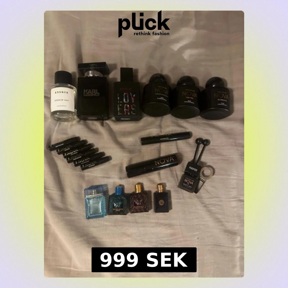 Stor samling parfymer och doftprover från Nova, Karl Lagerfeld, Versace, Essnce och Replay. Innehåller både fullsize och miniflaskor i svart. Flera olika dofter och stilar, perfekt för dig som vill testa nytt eller hitta din signaturdoft. Du kan se alla olika samples och bildofter och parfymolja och travelspray från Nova Scents. Alla Nova Scents är 95% fulla, Replay 95% full, Karl Lagerfeld 75/80% full, essnce 40/50% full.
