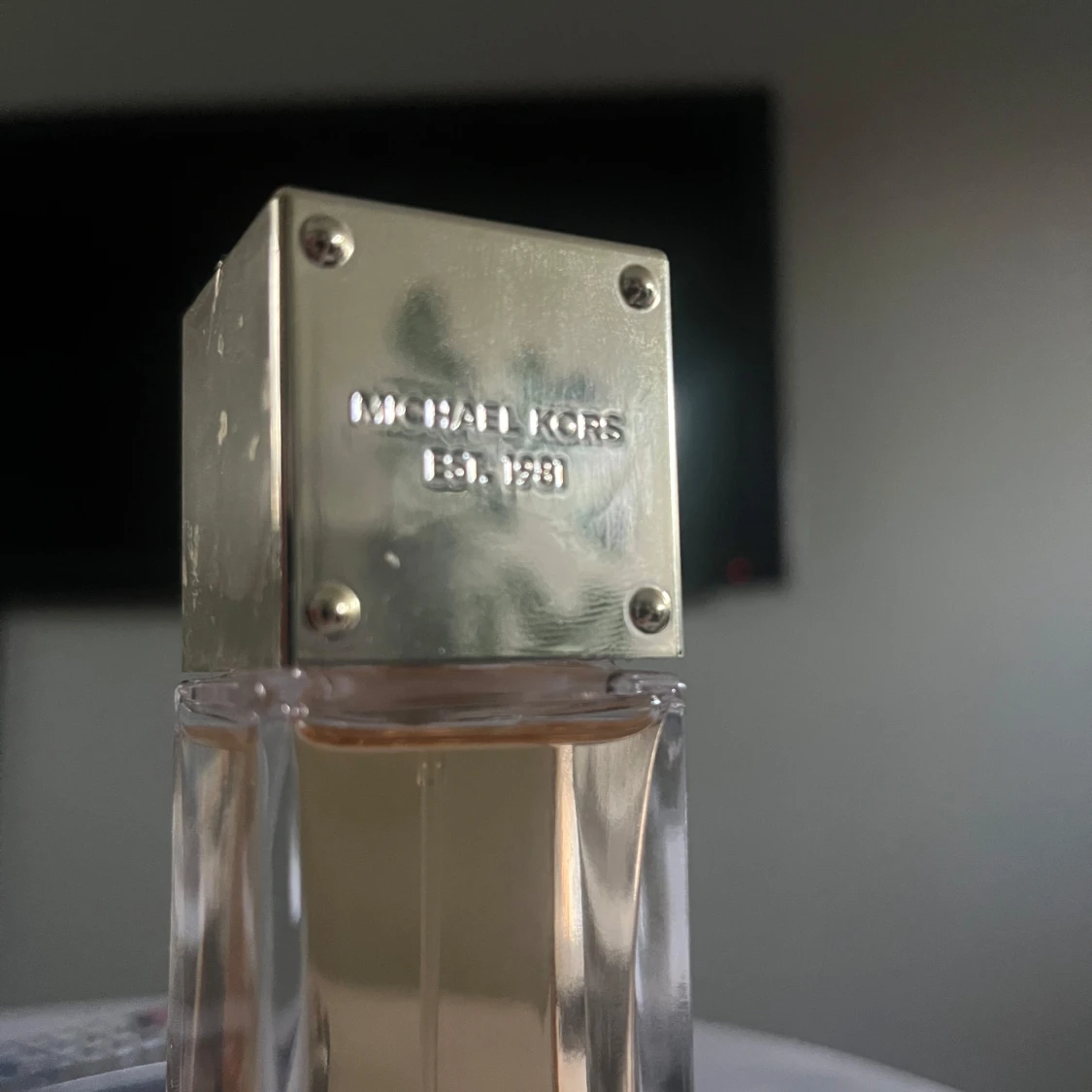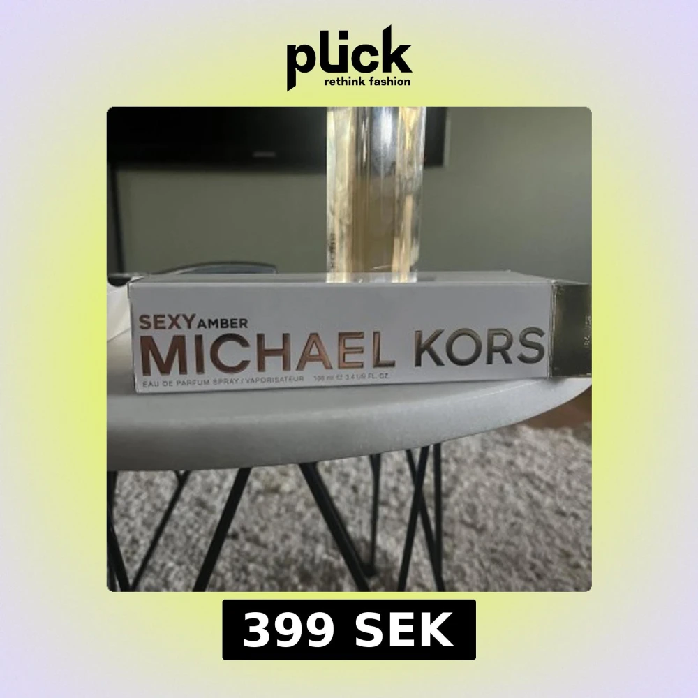 Lyxig parfym från Michael Kors, Sexy Amber, 100ml Eau de Parfum. Flaskan är rektangulär med transparent glas och en guldig insida, samt en fyrkantig guldfärgad metallkork med märkets logga. Har endast tagit 4 sprut eftersom det var fel parfym.