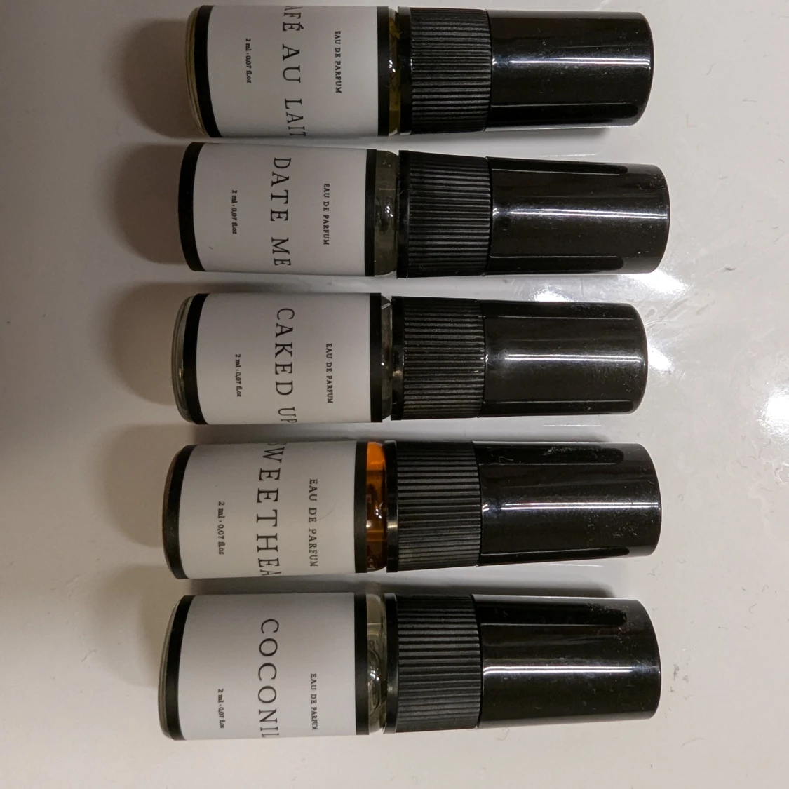 5 st tester a 2 ml från Curiosa. Cafe au lait, Date me, Caked up, Sweetheart och Coconilla. 120 kr för alla.
