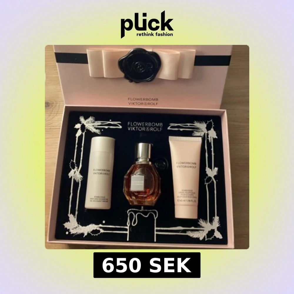 Exklusivt presentset med Flowerbomb från Viktor & Rolf. Innehåller en elegant parfymflaska med en blommig doft, en body lotion och en duschgel. Förpackningen är lyxigt designad med en rosa rosett och svart blomdetalj. Perfekt för den som älskar en söt och blommig doftupplevelse. Har bara testat den så den är nästan helt ny!