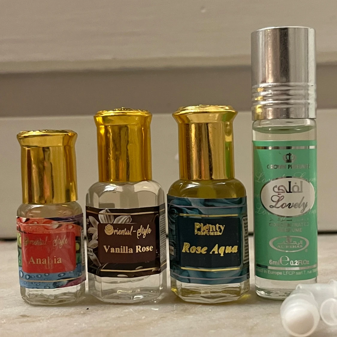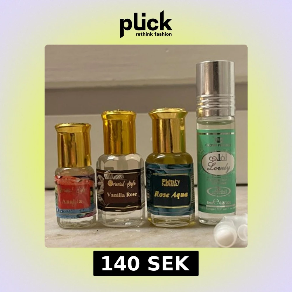 Jag säljer 4 stycken Parfymoljor från Sultan Essancy och al rehab. Jag säljer dem endast tillsammans. De är oanvända.