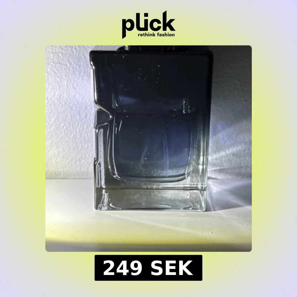 Elegant svart parfymflaska med en stilren och modern design. Flaskan har en fyrkantig form med en mörk toning som ger en mystisk och sofistikerad känsla. Perfekt för den som vill ha e tidlös och klassisk doftupplevelse.