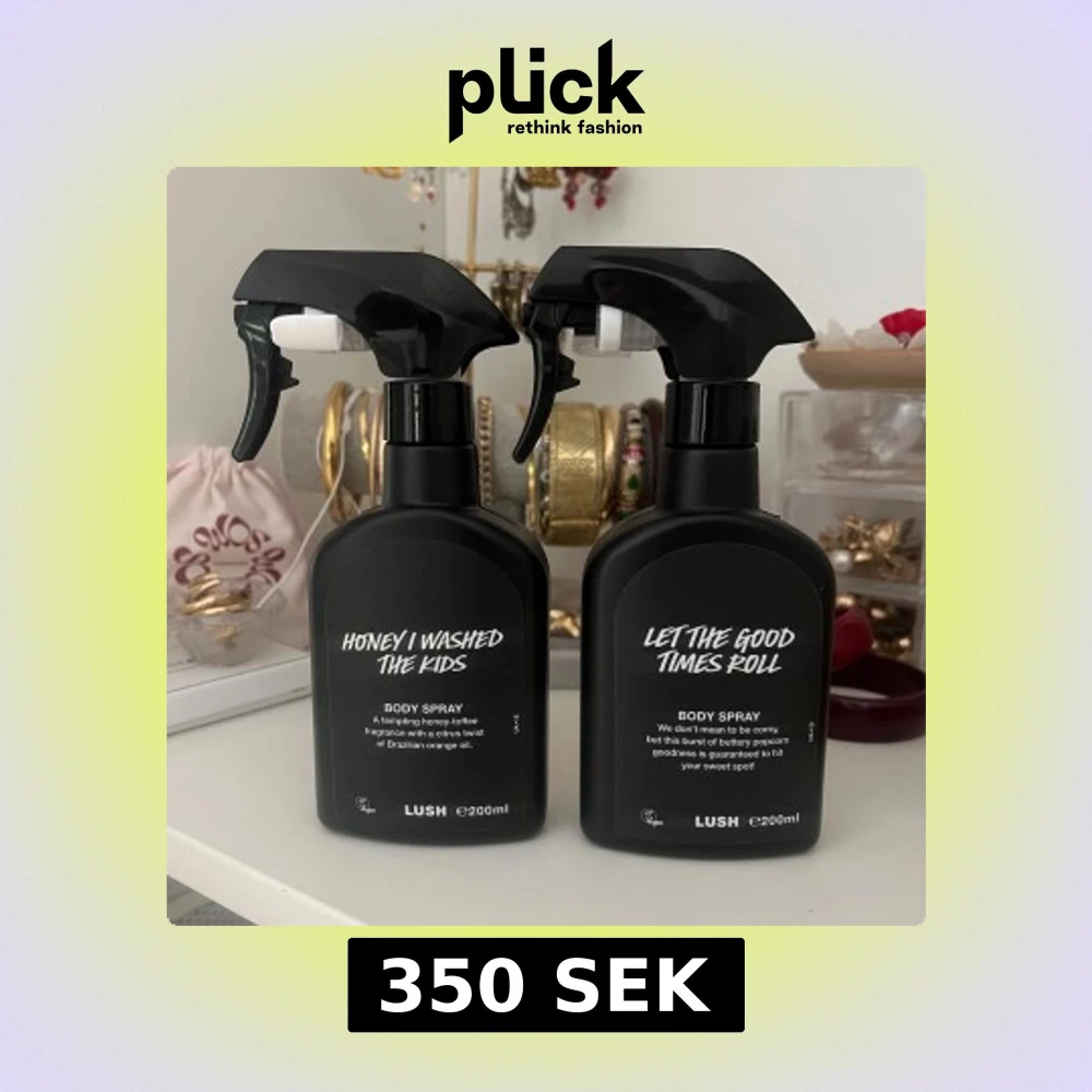 Två body sprays från LUSH: Honey I Washed The Kids med söt karamell, bergamott och apelsin( ALDRIG ANVÄND), samt Let The Good Times Roll med varm kanel, smält karamell och popcorn (4/5 kvar). Kan sälja de individuellt för 200kr st!