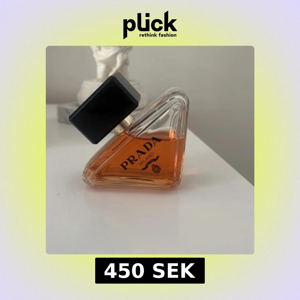 Prada Paradoxe Intense Eau de Parfum i en unik, trekantig glasflaska med svart, rektangulär kork. Doften har en varm bärnstensfärgad vätska och flaskan är elegant med tydlig Prada-logga och Milano-detaljer. Perfekt för dig som gillar lyxiga och trendiga parfymer. Den är knappt använd och är i mycket bra skick. Har tyvärr inte kartongen kvar.