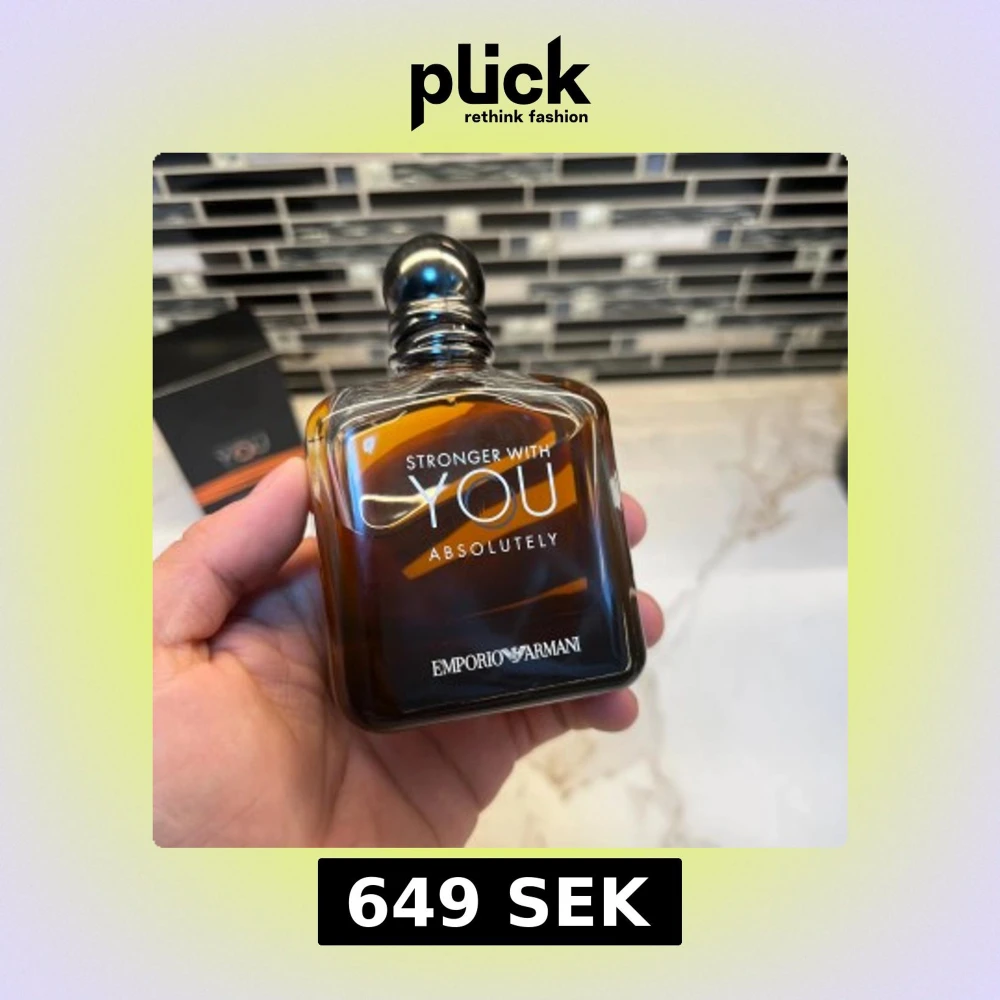 Emporio Armani Stronger With You Absolutely, 100ml. Ingredienser: Alcohol, Parfum/Fragrance, Aqua/Water, Butyl Methoxydibenzoylmethane, Coumarin, Linalool, Limonene, Alpha-Isomethyl Ionone, Eugenol, Citronellol, Benzyl Alcohol, Geraniol, Citral, CI 14700, CI 15510, CI 60730. Tillverkad i Frankrike.