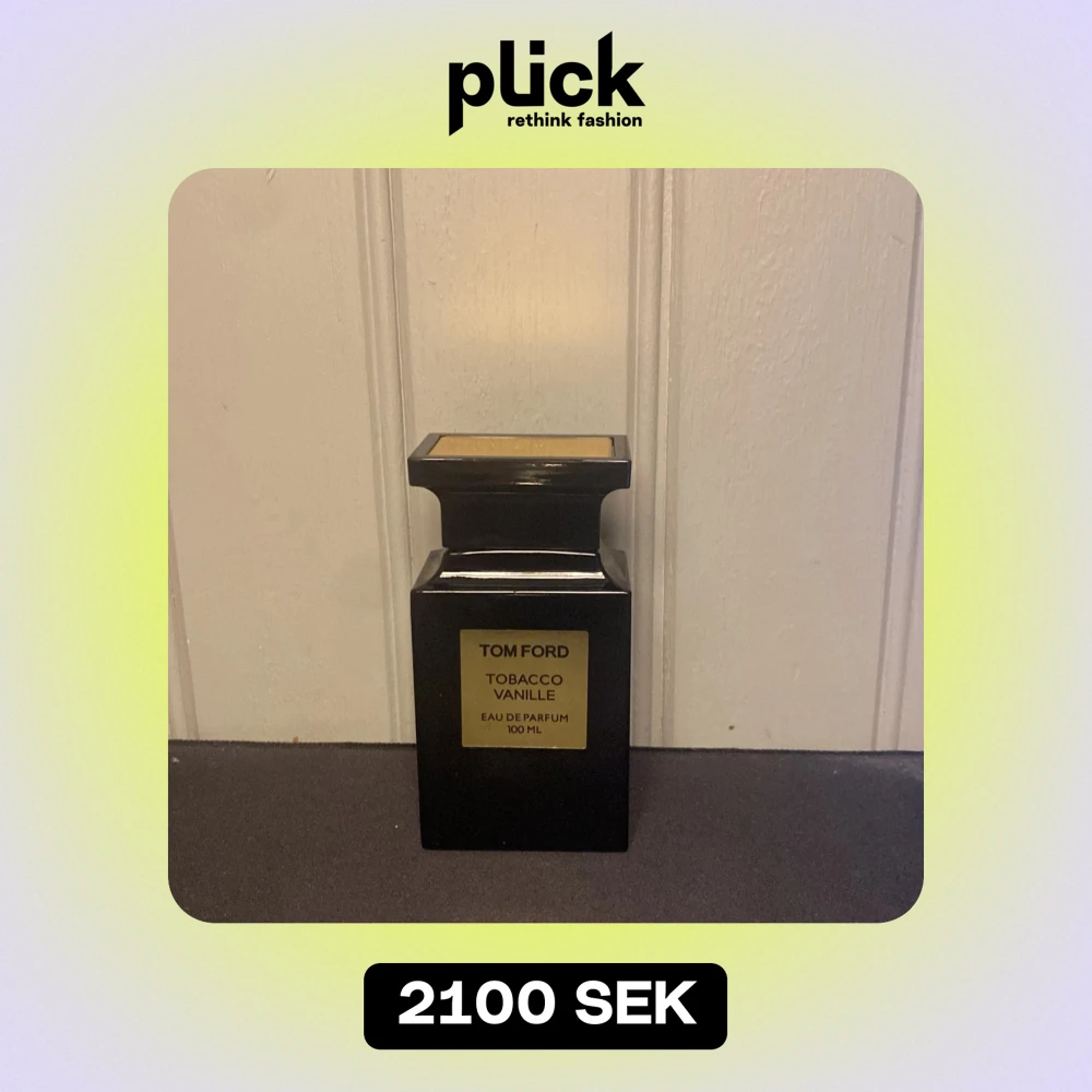 Säljer en lyxig Tom Ford Tobacco Vanille Eau de Parfum i en elegant svart flaska med guldtext. Flaskan rymmer 100 ml och kommer med originalförpackning. Perfekt för den som älskar en varm och kryddig doft med inslag av tobak och vanilj. Passar både till vardags och fest. En tidlös klassiker för parfymälskare!