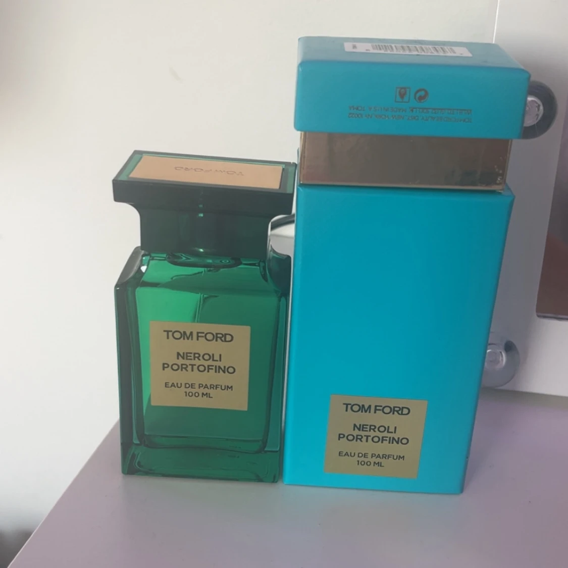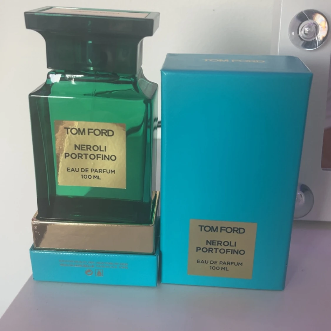 Tom Ford Neroli Portofino Eau de Parfum 100 ml. Lyxig parfym i en elegant grön glasflaska med guldiga detaljer och tillhörande turkos ask. Doften är känd för sina fräscha citrus- och blommiga toner, perfekt för dig som gillar exklusiva och fräscha parfymer.