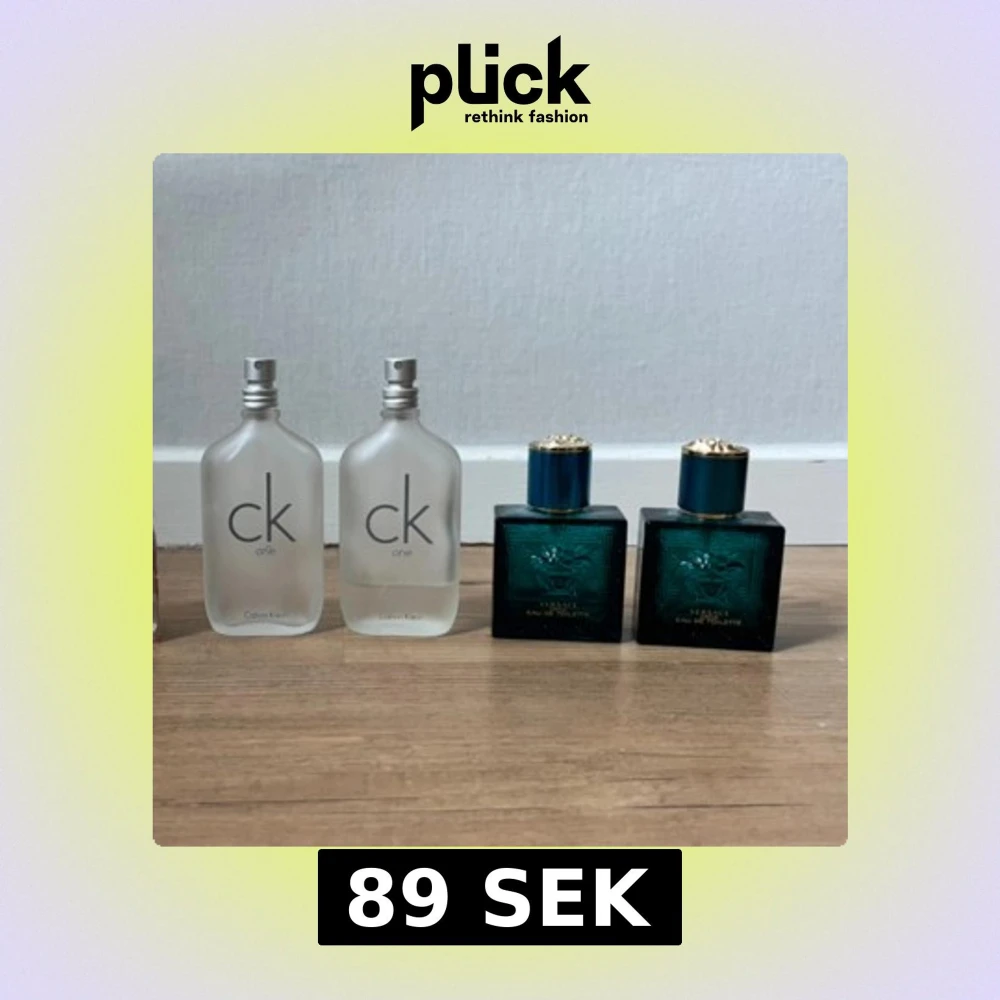 Två flaskor CK One 50ml från Calvin Klein och två flaskor Versace Eros Eau de Toilette 30ml. Passar dig som gillar stilrena och ikoniska märken. OBS: Flaskorna är tomma.