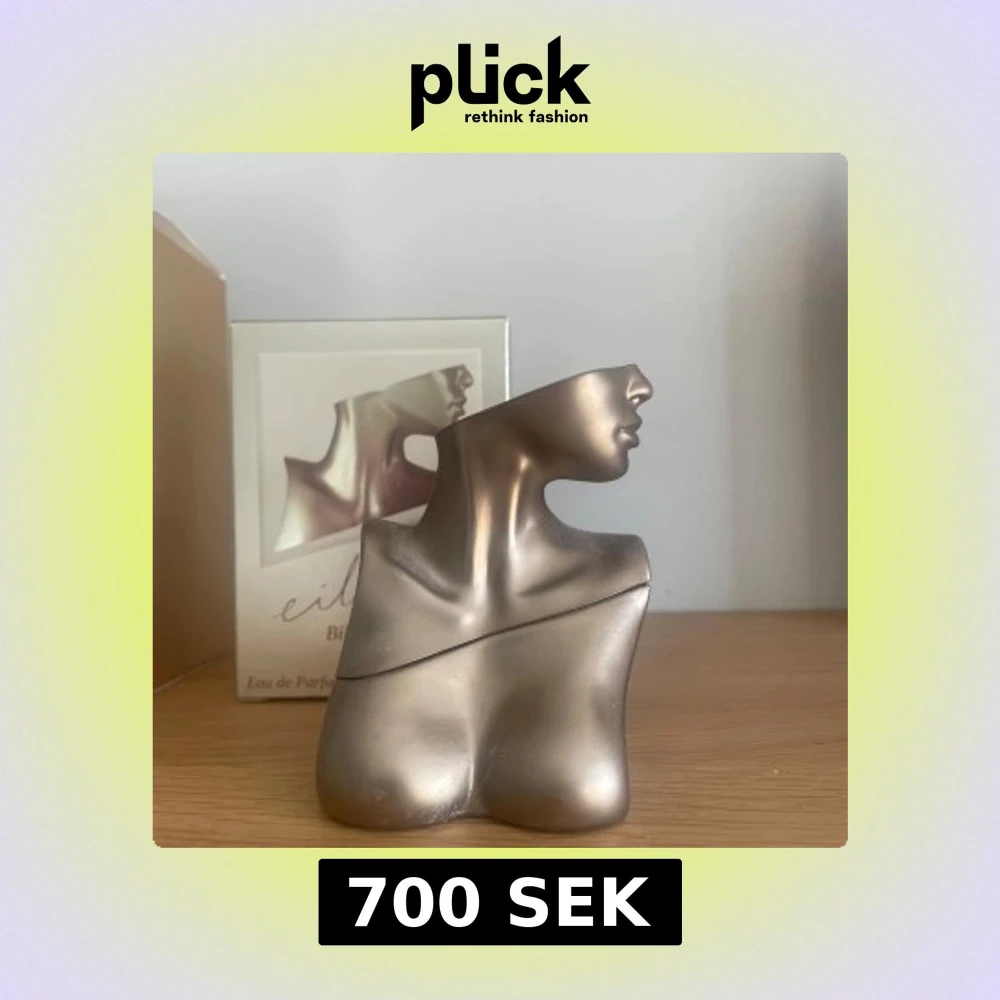 Unik parfymflaska i form av en stiliserad torso i metallisk färg. Flaskan har en elegant och konstnärlig design som påminner om en skulptur. Perfekt som en dekorativ detalj i hemmet eller som en speciell present.