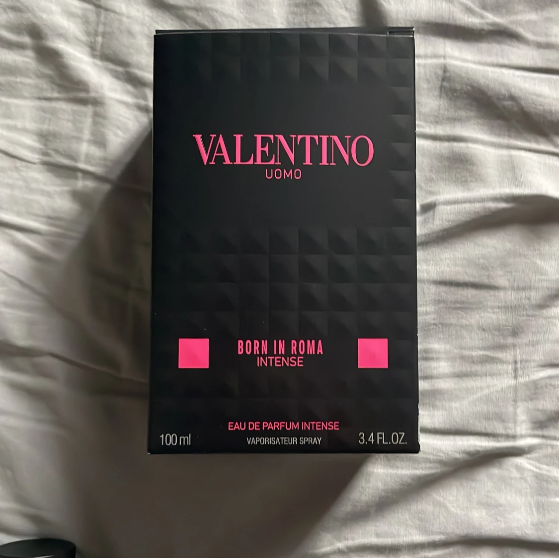 Valentino Uomo Born In Roma Intense Eau de Parfum, 100 ml. Flaskan är lyxigt mönstrad i svart och transparent glas med rosa detaljer och svart kork. Doften är intensiv och modern, perfekt för dig som vill sticka ut med en exklusiv parfym.
