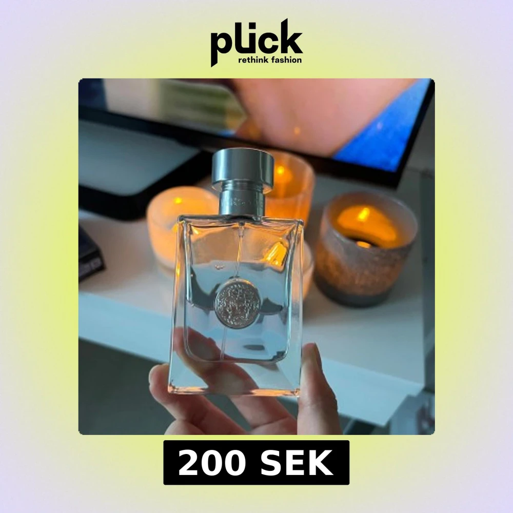Versace Pour Homme Eau de Toilette med elegant, transparent glasflaska och silverdetaljer. Flaskan har Versaces ikoniska Medusa-logga framtill och ett stilrent, maskulint uttryck. Kommer med original mörkblå kartong med silvertext och mönster. Perfekt för dig som gillar lyxiga dofter.