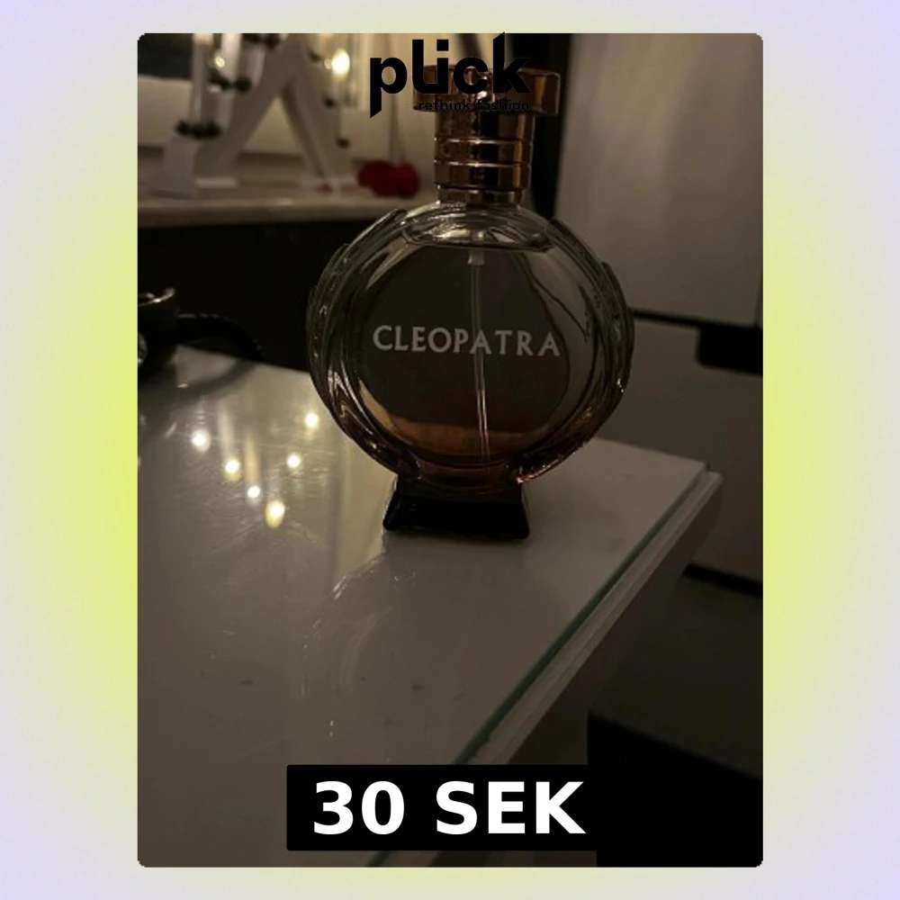 Snygg parfymflaska med namnet Cleopatra. Perfekt för dig som vill ha en unik och stilren accessoar på sminkbordet. Volym och ingredienser framgår ej på bilden.