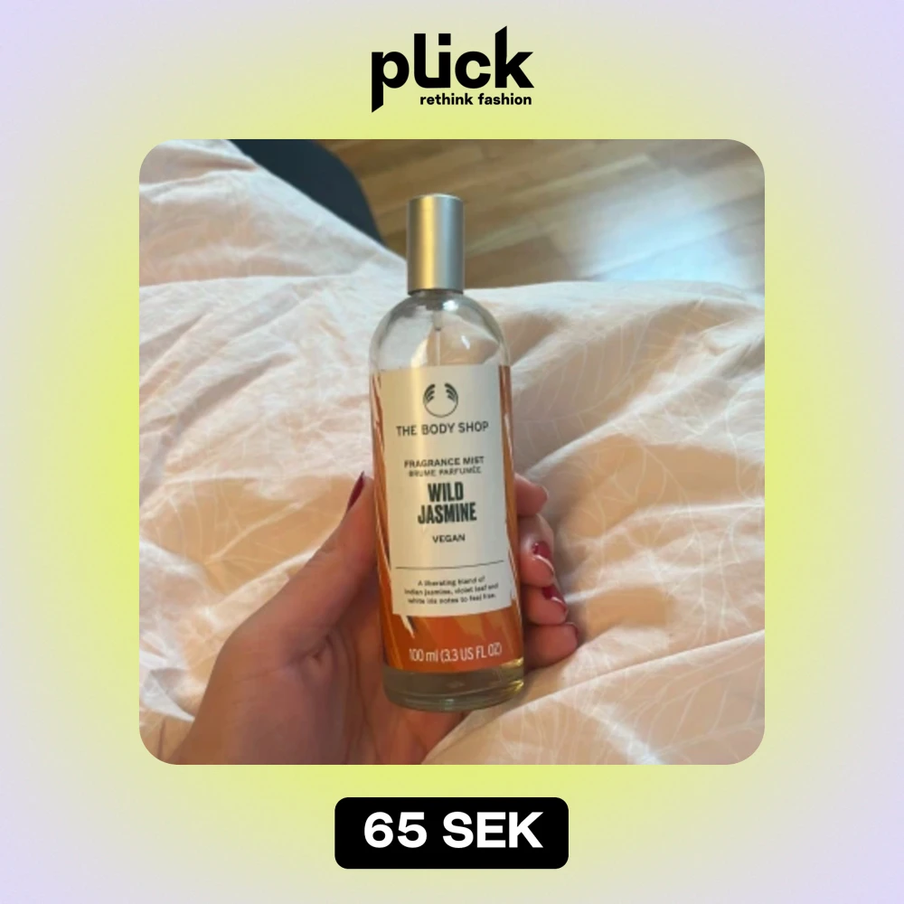Wild Jasmine Fragrance Mist 100 ml - Fräsch och blommig doftmist från The Body Shop i doften Wild Jasmine. Flaskan är genomskinlig med silverfärgad spraykork och har en vit och orange etikett. Vegansk formula. Perfekt för dig som gillar lätta, blommiga dofter.