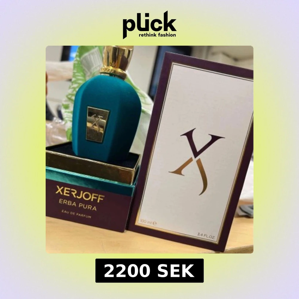 Säljer en lyxig flaska Xerjoff Erba Pura Eau de Parfum. Flaskan är i en elegant turkos färg med gulddetaljer och rymmer 100 ml. Den kommer i en stilren förpackning med matchande design. Perfekt för den som älskar exklusiva dofter. Helt ny har ej använt den, 2000kr vid snabbaffär