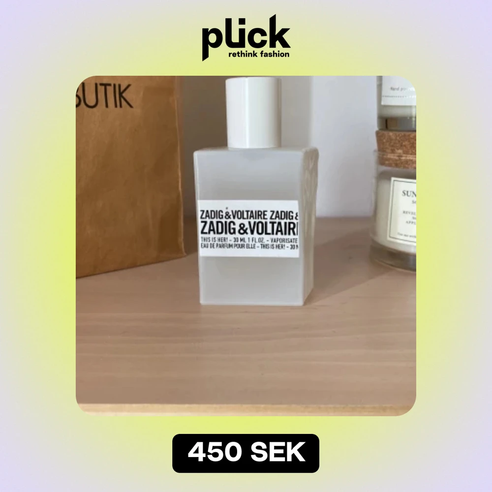 En elegant och modern parfym från Zadig & Voltaire. Flaskan är vit och fyrkantig med en enkel design. Parfymen heter 'This is Her!' och är en Eau de Parfum för kvinnor. man får även med förpackningen☺️