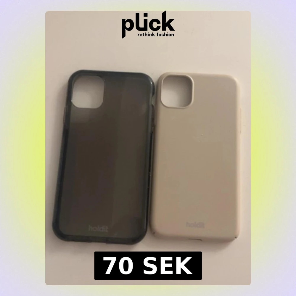 Säljer två snygga mobilskal från Holdit, ett i genomskinligt svart och ett i matt vit:beige💕(iphone 11)