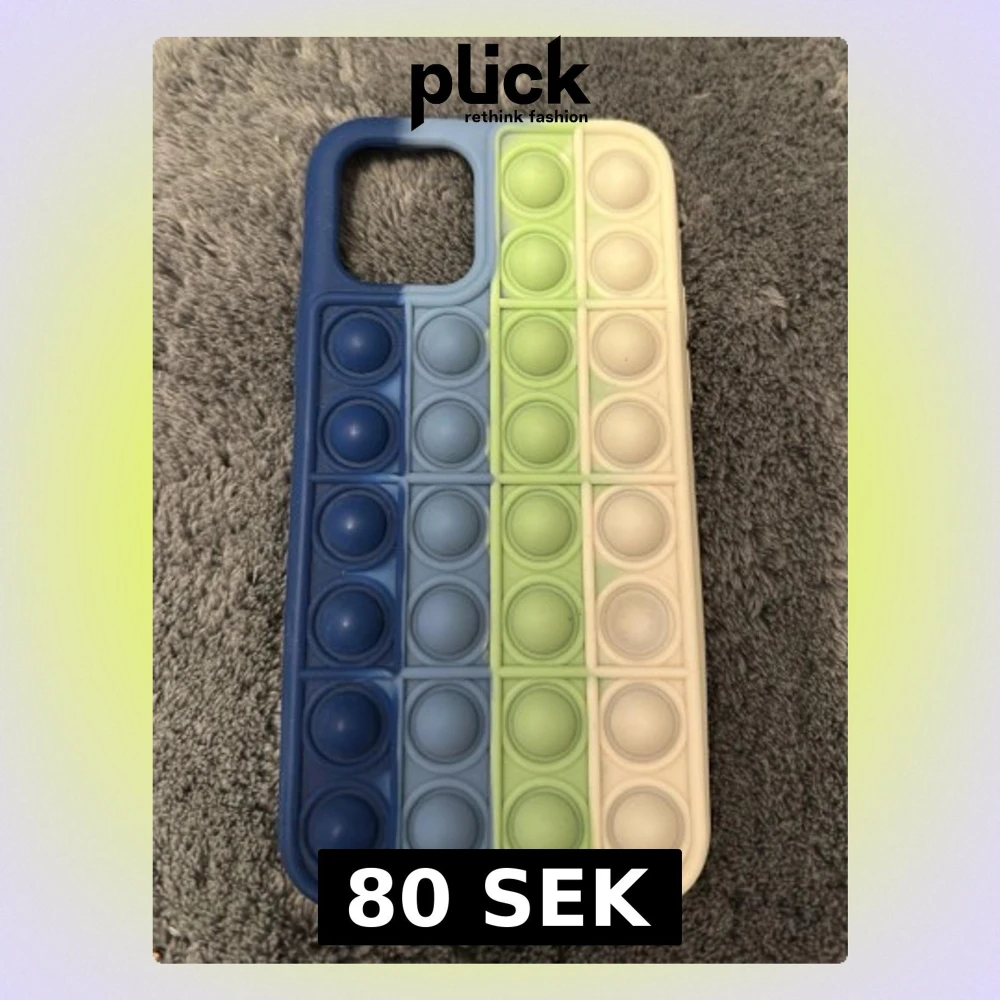Säljer ett pop it mobilskal i silikon med färgerna blå, grön och vit. Skalets baksida har bubblor som går att trycka på, perfekt för dig som gillar att pilla. Passar till mobil med stor kameraöppning. Skalets material är mjukt och flexibelt.