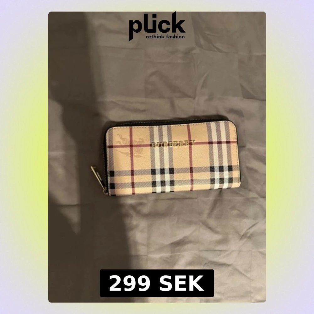 Snygg plånbok från Burberry med det ikoniska beigea rutmönstret i svart, vitt och rött. Plånboken har dragkedja i guld och logga framtill. Perfekt för dig som gillar stilrena accessoarer med lyxig känsla.