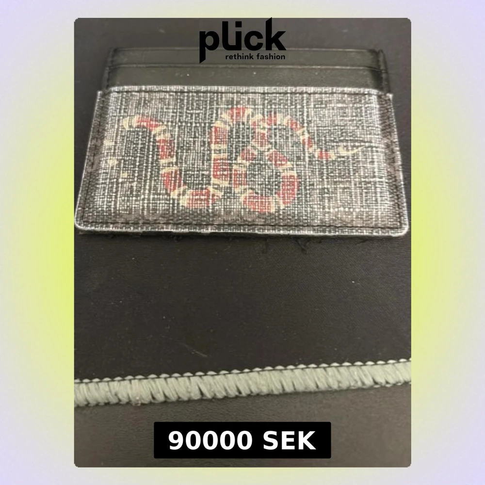 Snygg korthållare från Gucci i grått canvasmaterial med det klassiska ormmotivet i rött, vitt och svart på framsidan. Plats för flera kort och stilren design med exklusiv känsla. Perfekt accessoar för dig som gillar lyxiga detaljer.