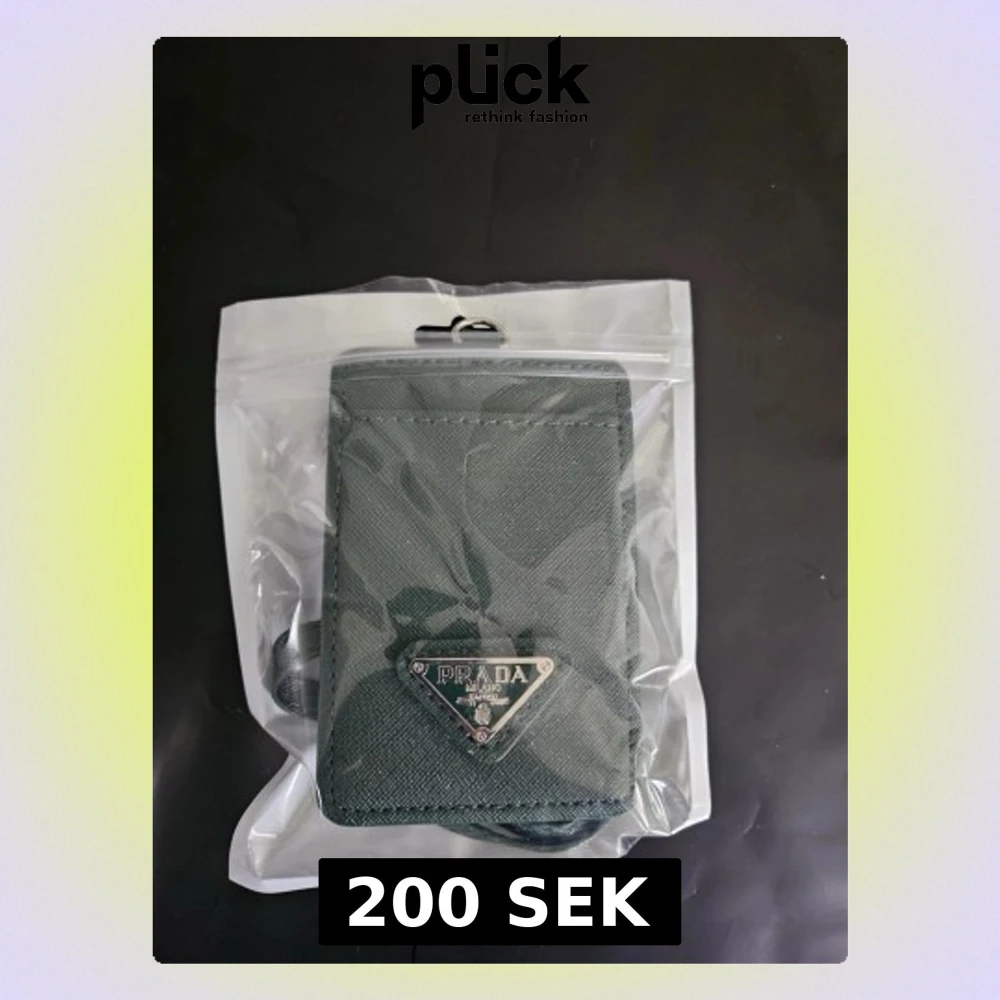 Stilren grön plånbok i slitstarkt tygmaterial med klassisk trekantig logga i metall framtill. Plånboken har ett fack med transparent fönster på baksidan och en matchande axelrem för smidig användning. Perfekt för kort och småsaker.
