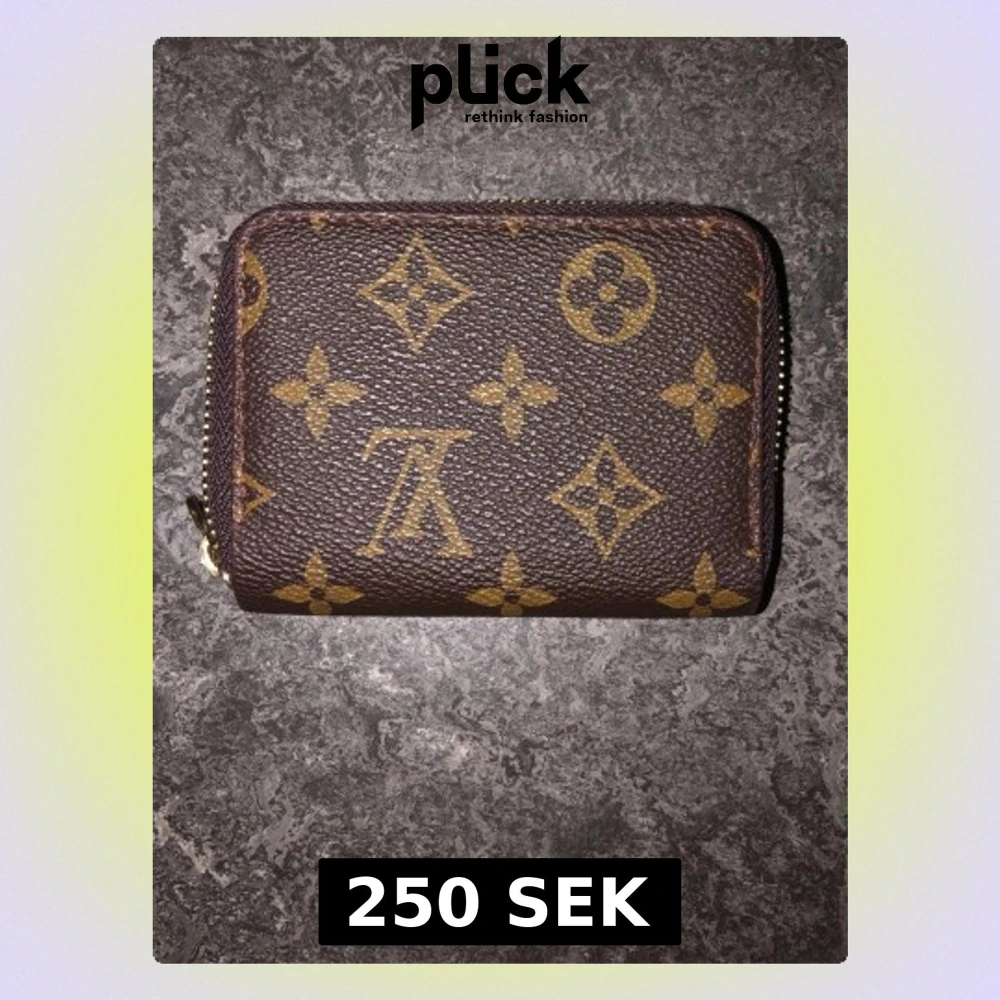 Säljer en brun plånbok med klassiskt monogrammönster i guld. Plånboken har dragkedja runtom och flera fack för kort och sedlar. Tillverkad i tåligt canvasmaterial med detaljer i metall. Perfekt storlek för att ha med sig överallt.