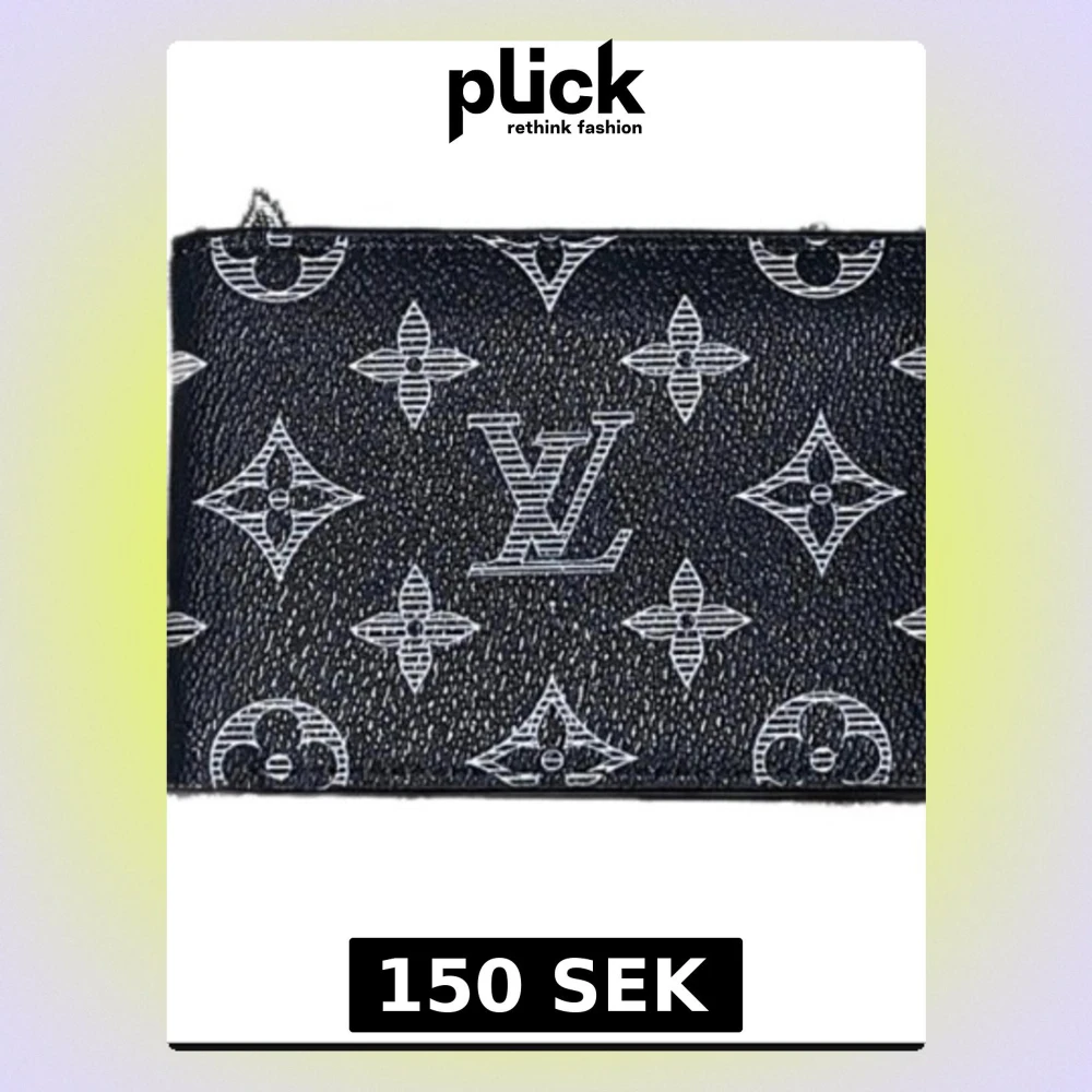 Snygg svart plånbok från L med klassiskt monogrammönster i vitt. Tillverkad i strukturerat läder och har en stilren, rektangulär form. Perfekt för dig som gillar exklusiva accessoarer med ikonisk design.