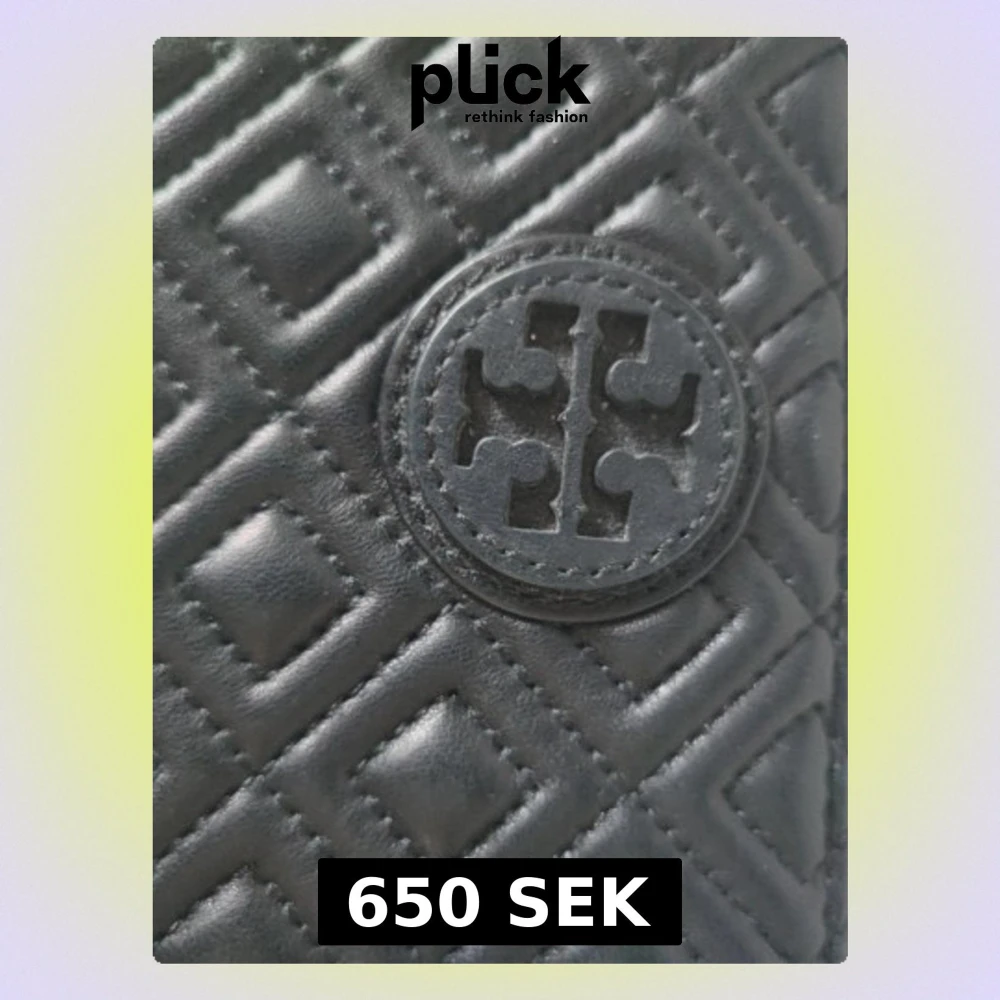 Stilren svart plånbok från Tory Burch med quiltat mönster och det ikoniska logotyp-emblemet på framsidan. Plånboken är tillverkad i läder och har en kompakt, fyrkantig form som är perfekt för att organisera kort och kontanter.