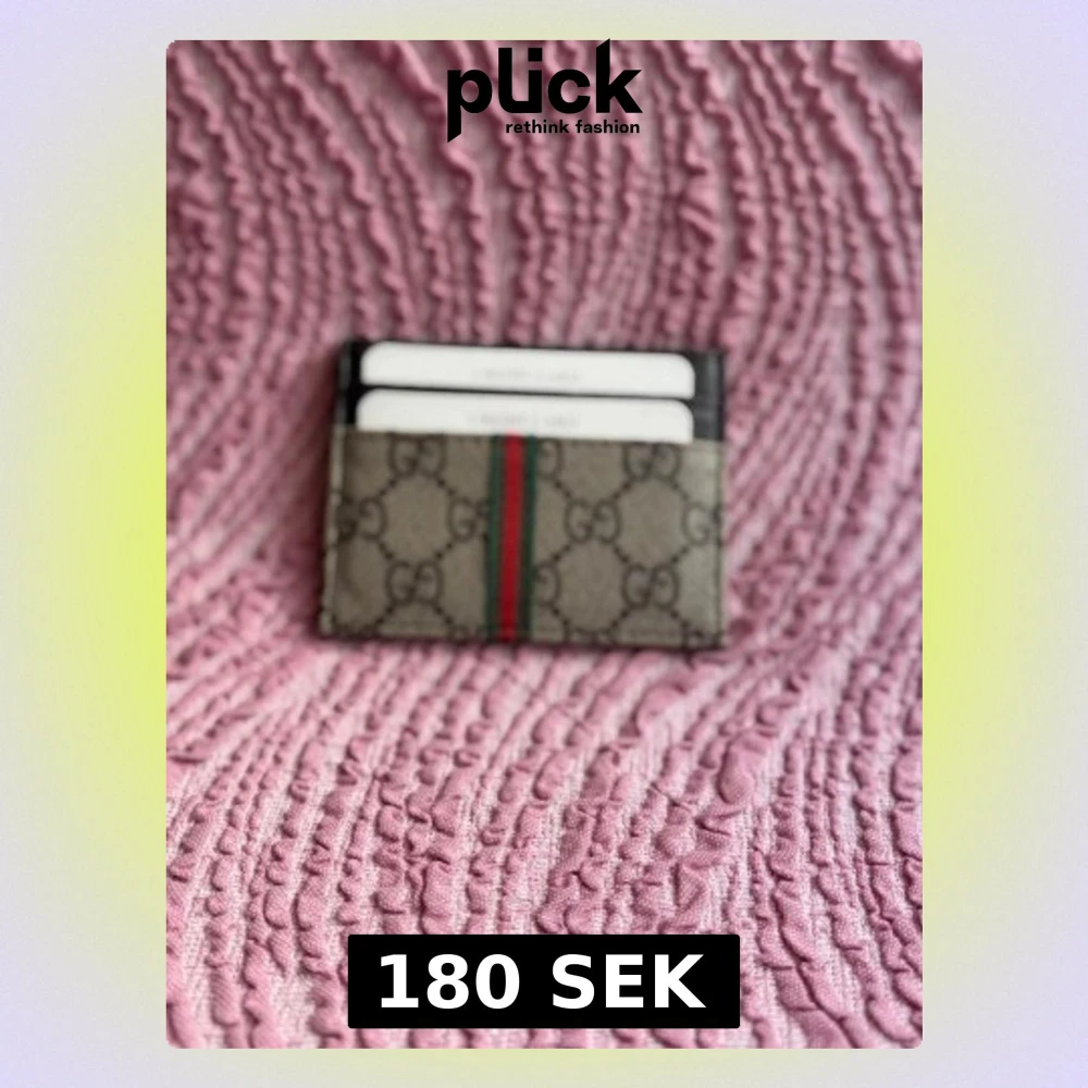 Snygg korthållare i beige canvas med klassiskt och en grön-röd rand i mitten. Kompakt och smidig design med plats för flera kort. Perfekt accessoar för dig som gillar lyxiga detaljer och stilren look.