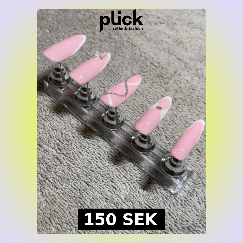 Handgjorda press on naglar, perfekt för dig som vill ha något extra vid något tillfälle!! Utöver naglarna så medföljer även nailstickers för att fästa naglarna, cuticle pusher och en nagelfil. Du kan även skapa press on naglar efter dina önskemål, kontakta mig och skicka dina idéer, inspirationsbild eller liknande så löser jag det! Naturella (ingår stenar, charms på 1 nagel, glitter på 1 nagel : 100kr Design (Allt ingår) : 200kr Eget val (jag bestämmer färg, form och design) : 150kr