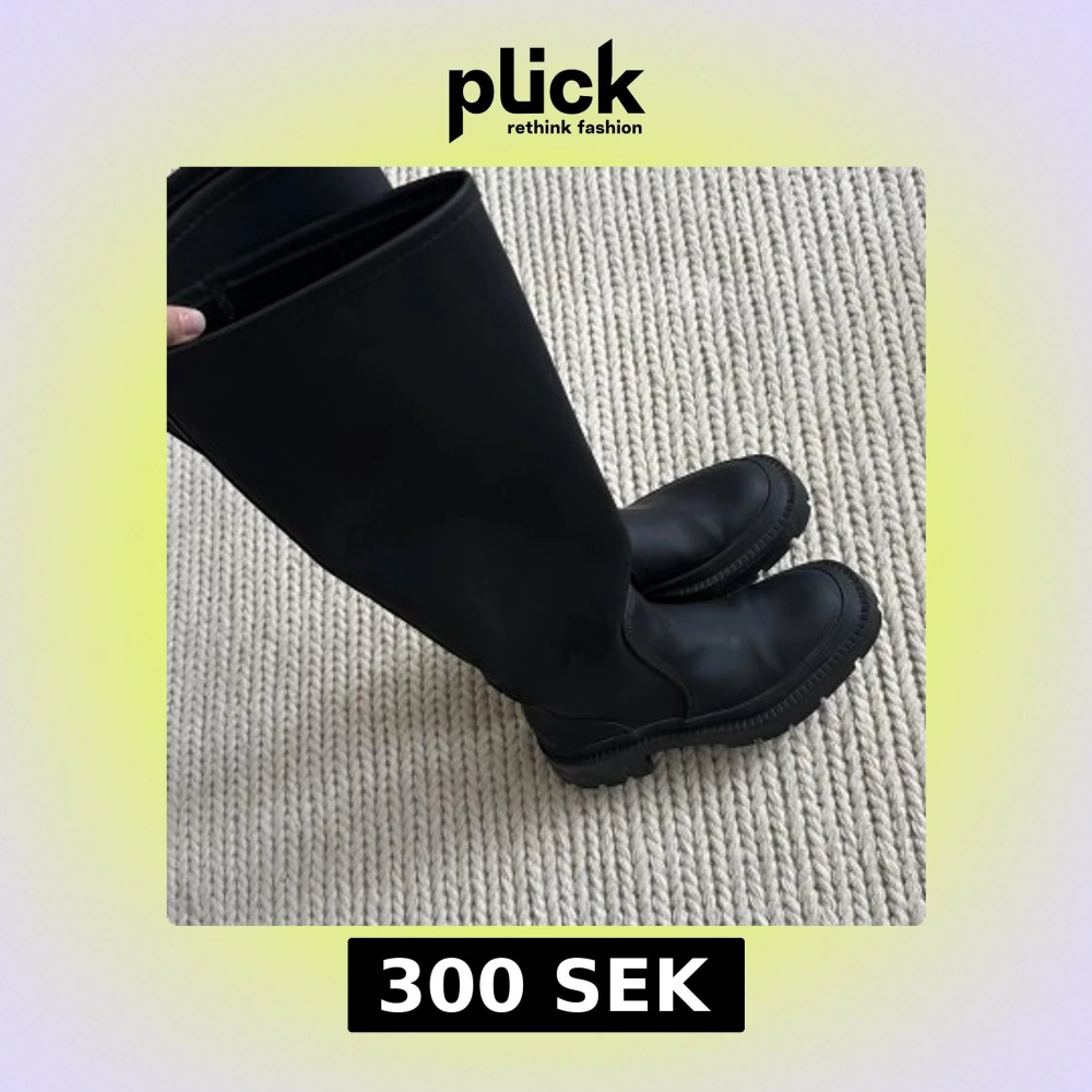 Snygga svarta ”gummi” stövlar från Zara. Aldrig använda, så inga defekter och i nyskick🤗