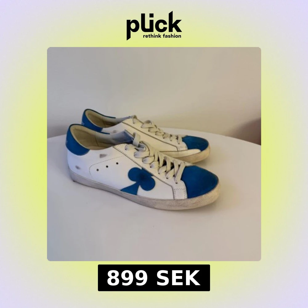 Vita och blå sneakers med klöverdetalj